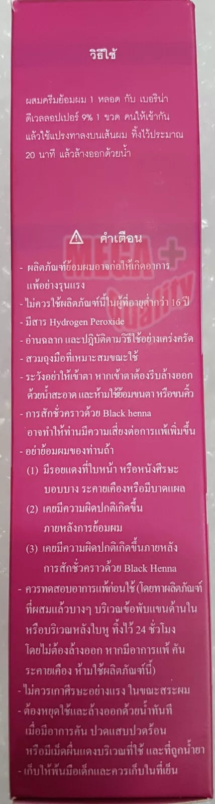 Mix 1 tube (60 g) of Berina Hair Color Cream with an equal amount of 9% developer in a non-metallic bowl
