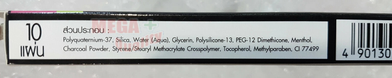 Packaging: Black and pink box with charcoal graphics; individually sealed strips inside