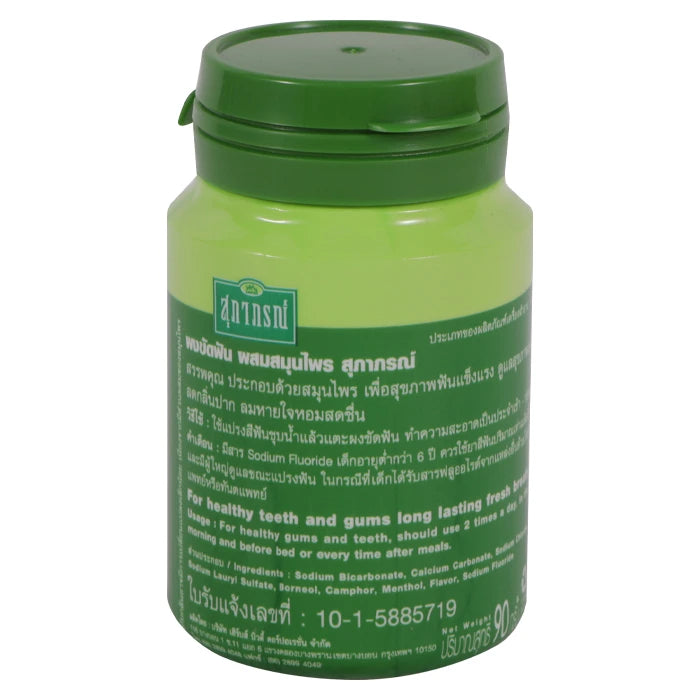 Experience the natural power of Thai herbal wisdom with Supaporn Tooth Polishing Powder Plus Herbs. This fluoride-enriched tooth powder is crafted with a unique blend of natural ingredients and traditional herbs to gently clean, polish, and freshen your teeth and gums. Designed for daily use, it effectively removes plaque and stains while supporting long-lasting oral hygiene.